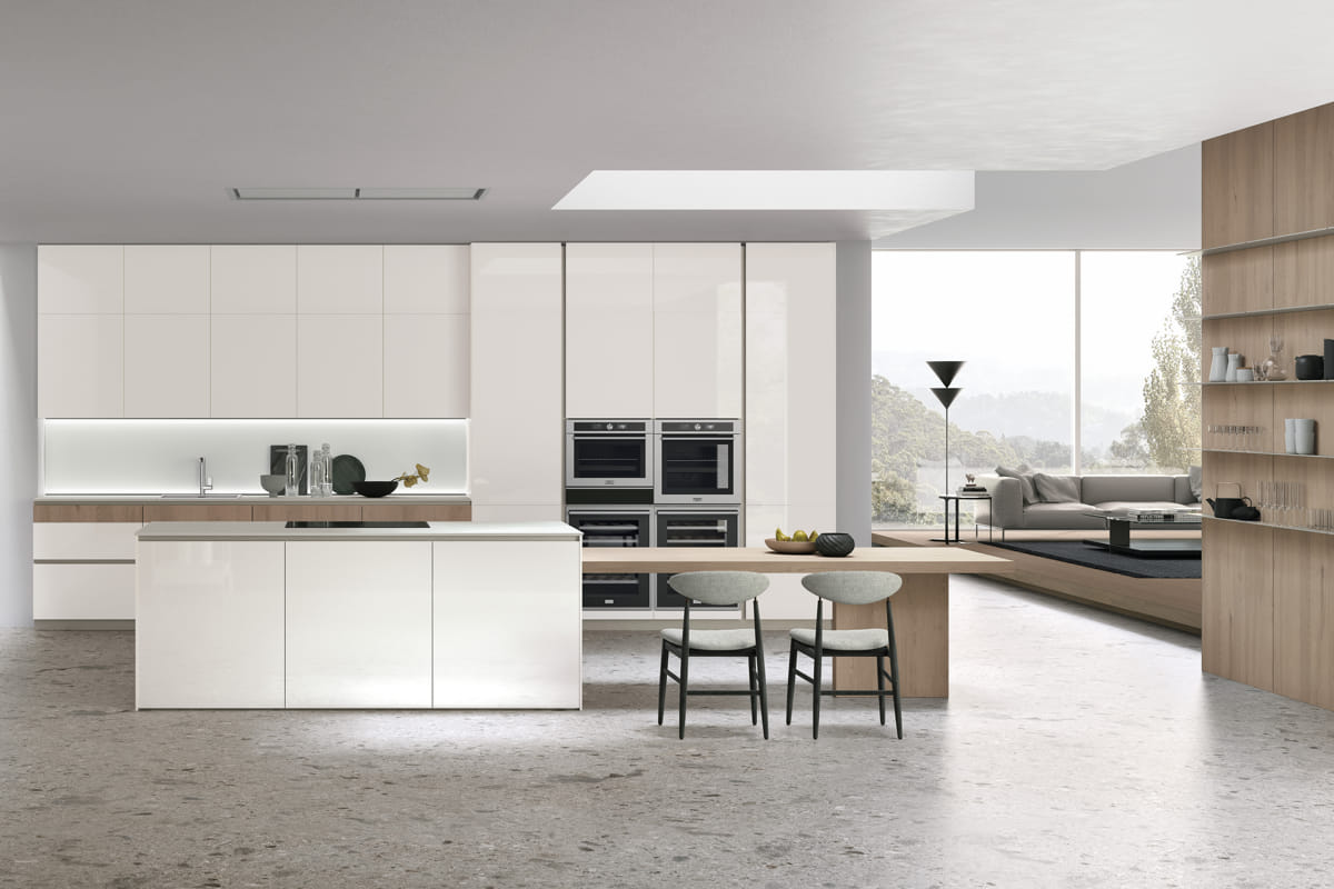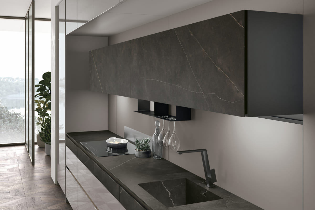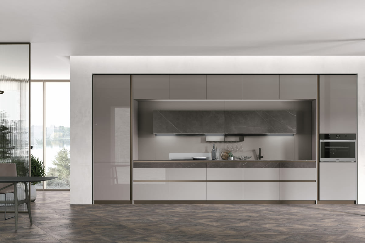 Aliant interpreta uno dei materiali più puri: il vetro. Una cucina che può essere integrata con ante e elementi eclettici per soluzioni inedite, un armonioso gioco di riflessi che esprime leggerezza visiva, dove il vetro rimane l’elemento protagonista. Puo’essere dotata di una vasta gamma di accessori che la rendono adatta per tutte le esigenze: come Tavinea Grass, un nuovo sistema organizzativo-innovativo all’interno di cassetti e cestoni per gli utensili della cucina.Cassetti con portaposate dalla moderne linee oblique, utilissimi e dal design raffinato.Una grande ricerca formale anche all’interno dei cestoni con eleganza e ordine, un mix di materiali durevoli come metallo e legno. Dettagli preziosi come Detroit, la barra luminosa a LED con sensore elettronico che permette l’accensione e lo spegnimento automatico della lampada alla chiusura del cassetto. Gli interni di basi e colonne si possono personalizzare con il faretto a LED Emotion, dotato di telecomando che permette di cambiare il colore della luce passando da un’effetto caldo a freddo .Anche i ripiani si possono personalizzare inserendo Strike, ripiano in vetro con telaio in alluminio. Il dettaglio – interno ed esterno – nella cucina diventa una nota distintiva sinonimo di qualità.