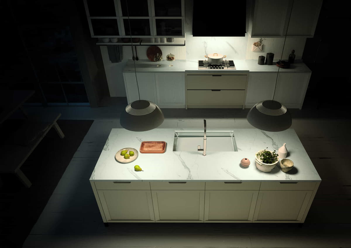 Il legno, materiale nobile della tradizione, trova in Newport una nuova modalità di espressione. Un design che si apre alle tante interpretazioni del gusto internazionale, perché ideato per un pubblico globale, e che modula il suo carattere estetico attraverso l’alternanza dei materiali e delle finiture. I particolari di impronta tipicamente classica, come l’anta a telaio o le ampie vetrine, si inseriscono in una cucina caratterizzata da una linearità versatile e inseribile in contesti arredativi sia metropolitani che tradizionali. L’anta accoglie una cornice perimetrale leggera, la cui sagoma si piega verso l’interno, in contrasto con i sottili traversi orizzontali dove è stata ricavata una comoda presa maniglia.